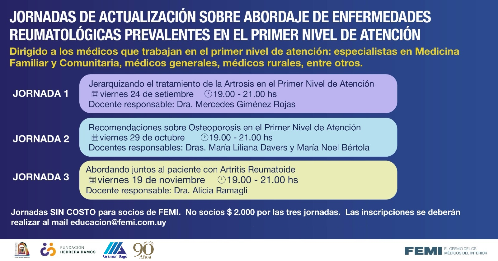 JORNADAS DE ACTUALIZACIÓN SOBRE ABORDAJE DE ENFERMEDADES REUMATOLÓGICAS PREVALENTES EN EL PRIMER NIVEL DE ATENCIÓN Esta actividad gratuita para socios [...]