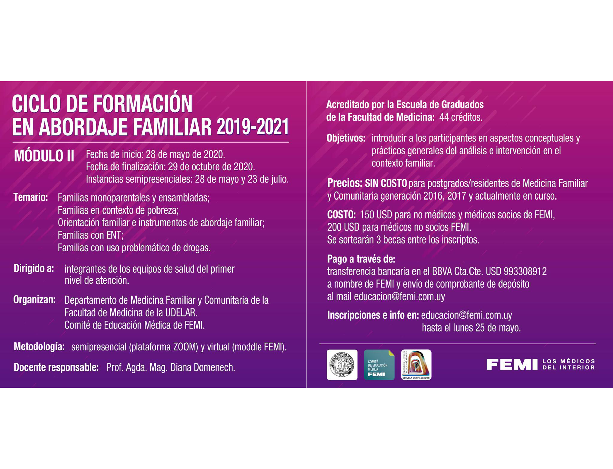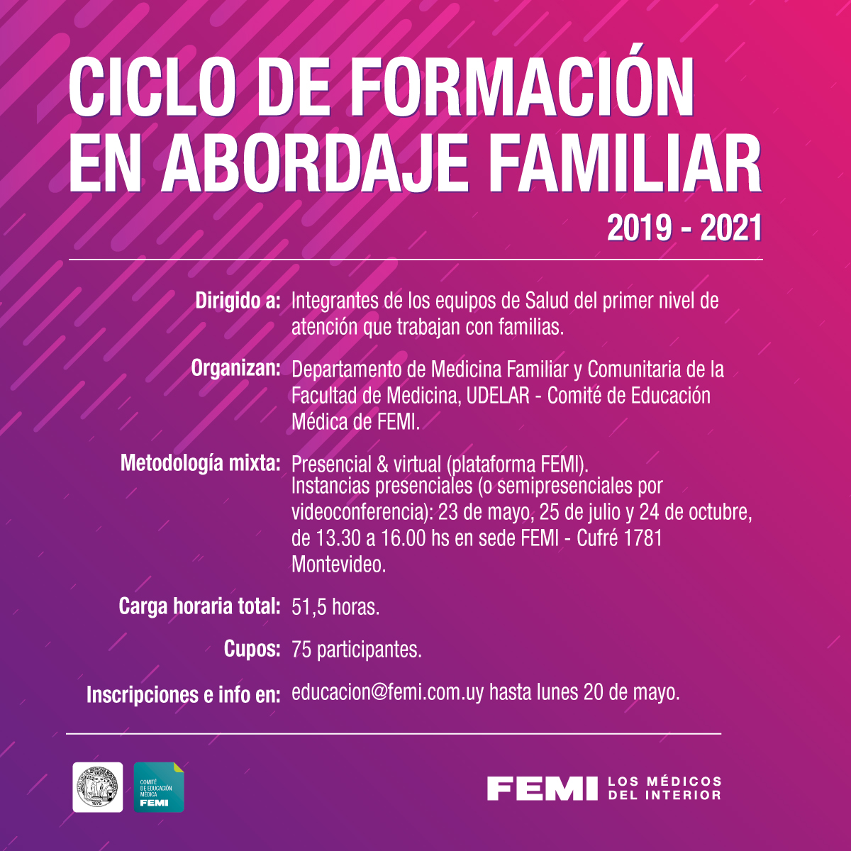 2019 · 2021Dirigido a: Integrantes de los equipos de Salud del primer nivel de atención que trabajan con familias.Organizan: Departamento de medicina [...]