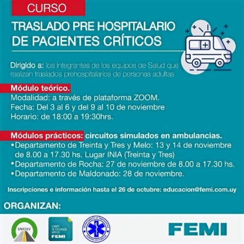 Organizan: UNASEV - Comité de Educación de FEMI - Cátedra de Emergencia del Hospital de Clínicas. Dirigido a los integrantes de los equipos de Salud q [...]